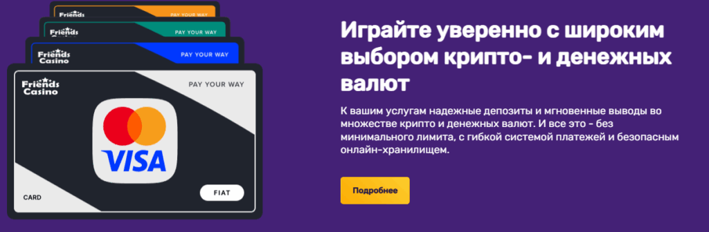 Способы депозита и скорость вывода в Friends casino